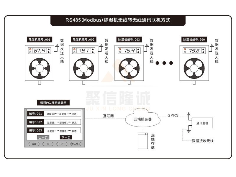 智能無線溫濕度集中監(jiān)控系統(tǒng)由智能無線溫濕度集中監(jiān)控主機、智能無線溫濕度集中監(jiān)控子機和監(jiān)控軟件構(gòu)成。每臺智能無線溫濕度集中監(jiān)控主機可與最多200臺智能無線溫濕度集中監(jiān)控子機組網(wǎng)。智能無線溫濕度集中監(jiān)控主機通過RS232接口與電腦連接或通過SIM模塊,可接入監(jiān)控計算機或可通過無線通訊信號把數(shù)據(jù)發(fā)送到上一級的運管中心。