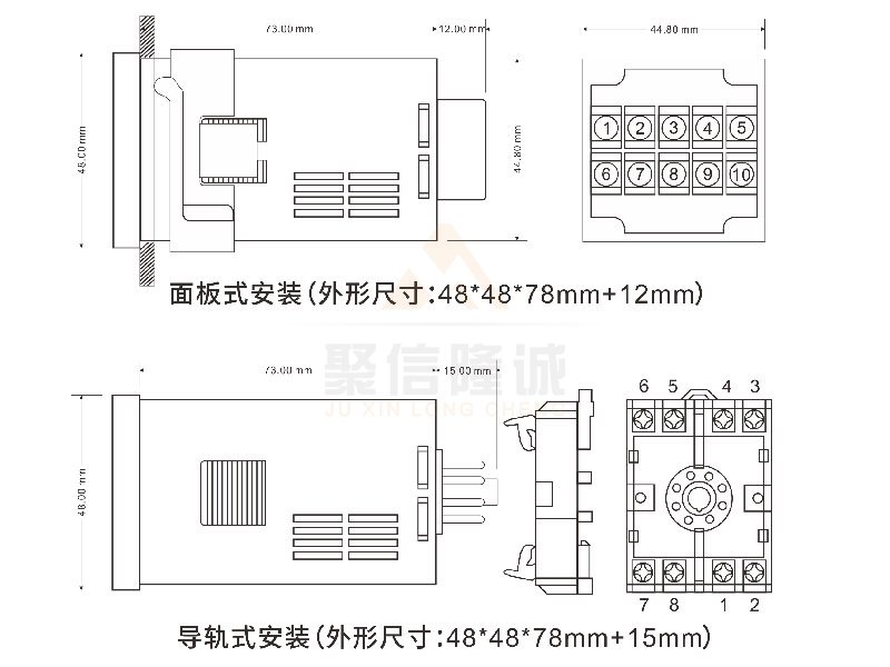 安裝方式:導(dǎo)軌式安裝,面板式安裝(開(kāi)孔尺寸:45X45)